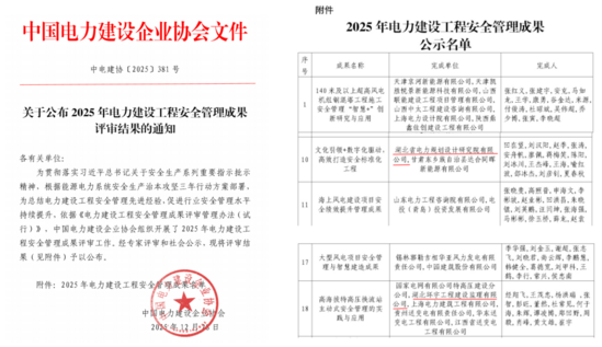 近日,中国电力建设企业协会公布了2025年电力建设安全管理创新、安全技术创新评选活动的结果。其中,公司2项安全管理成果入选“2025年电力建设工程安全管理成果名单”,成为2025年全国电力行业32项可复制、可推广的成果之一,将纳入2025年电力建设工程安全管理成果汇编,作为行业标杆向全国推广。 中国电力建设企业协会安全管理成果奖评选活动范围涵盖了央企单位、地方能源集团等多家单位,参评范围广泛、参与主体多元,评选结果高度兼具行业代表性与权威公信力。 自申报工作启动以来,公司高度重视,统筹协调、周密部署,组织开展申报、修订、评审等各项工作。经过多轮汇报与评审,各级层层选拔,最终公司2项成果成功入选。 此次入选,不仅充分彰显了公司安全管理工作的扎实成效与安全文化建设的深厚积淀,更进一步提升了公司在电力行业的核心竞争力与品牌影响力。公司将以此为新起点,持续深耕安全文化建设领域,以更卓越的安全管理成果,为行业高质量发展注入强劲动力。 —获奖成果介绍— 《文化引领+数字化驱动,高效打造安全标准化工程》 《文化引领+数字化驱动,高效打造安全标准化工程》依托公司承建的中电建甘肃省东乡县250兆瓦光伏发电项目,秉持“安全大于天,人人扛在肩”的安全文化,以班组文化建设为根本,系统性推进安全标准化工程建设。深度践行安全生产“四个责任”体系网格化管理,创新推行“四项举措”管理模式,以强化班组建设、培育班组安全文化为核心,全面落实“穿透式”管理要求,严格执行安全生产策划先行、TOP10风险辨识与预控等核心机制。同时,积极引入数字化、可视化先进安全技术,以安全生产标准化建设夯实安全“三基管理”,构建起全方位、全流程的安全管控体系。该项目得到了地方新闻媒体专项采访报道,获得了行业主管部门和社会各界的高度认可。 《高海拔特高压换流站主动式安全管理的实践与应用》 《高海拔特高压换流站主动式安全管理的实践与应用》依托公司参建的卡麦±400千伏换流站监理项目,面对高海拔地区带来的多重挑战,创新实施主动式安全管理举措。项目建设过程中,推进安全设计优化,创新性地将继电器室、备品备件库、消防室等关键房间改为钢结构设计,从源头防范化解安全风险;健全高原人员健康保障体系,全方位守护高原人员健康,全力攻克高原极端天气带来的挑战;强化设备运输安全管控,通过道路踏勘与加固、模拟运输、科学统筹计划与协调、全程跟车与实时监控等举措,实现高原运输全程安全可控;推行先进的施工技术,全面推广装配式施工技术与机械化作业,有效降低登高作业风险。此次主动式安全管理实践成效显著,不仅筑牢了项目安全防线,更积累了高海拔地区特高压工程建设的宝贵经验,为同类型项目提供了可复制、可推广的参考范本。 | |